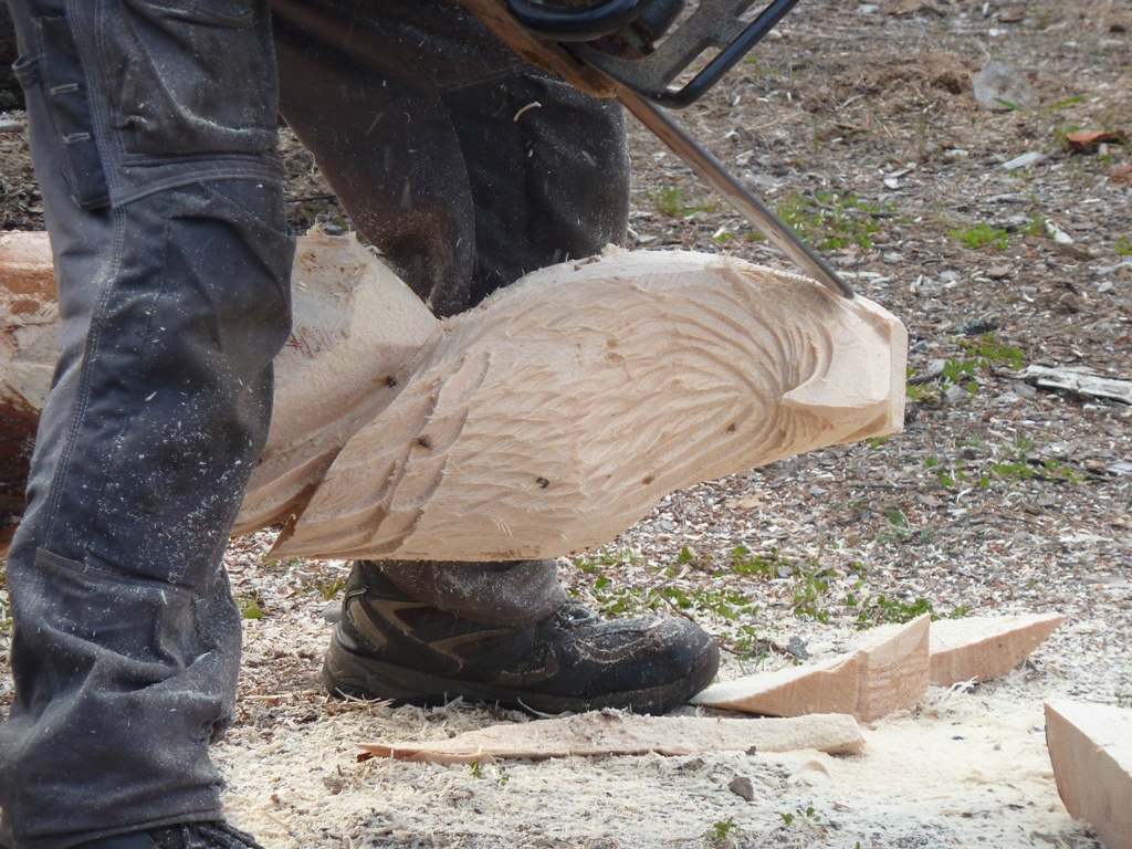 Onderweg naar Dorotea / vogel maken met kettingzaag.