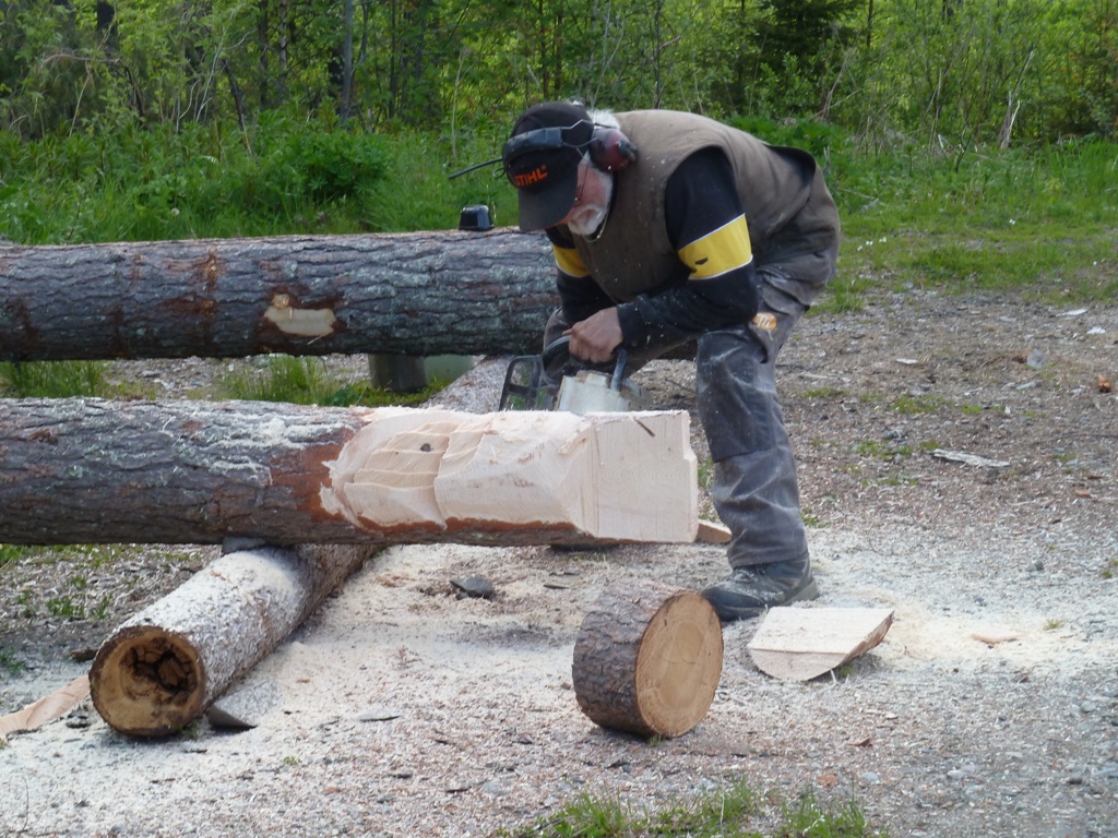 Onderweg naar Dorotea / vogel maken met kettingzaag.